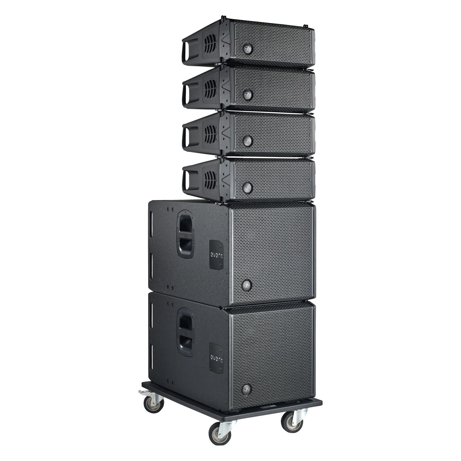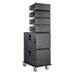 Ideale per Concerti in Teatri, Piazze, Festival, eventi sportivi. Velocissimo da istallare si può utilizzare appeso o in Stak con I sub e i satelliti disposti in un unica colonna.